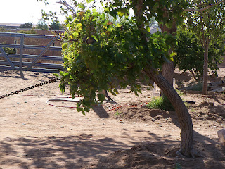 The tree was accidentally planted so that it makes it difficult to back up to the shed to unload. The tree has not been doing well for the past two years and we had kept threatening to cut it down. The time had come for the tree to go. But instead of cutting it down with a saw we decided to pull it down with the truck and trailer. Here are photos of the pitiful little tree coming down and being drug away. As you can see it didn't have much of a root ball. There are places in our yard where there is calichi clay under the ground which will not let anything grow. I think this tree was on some of the clay.